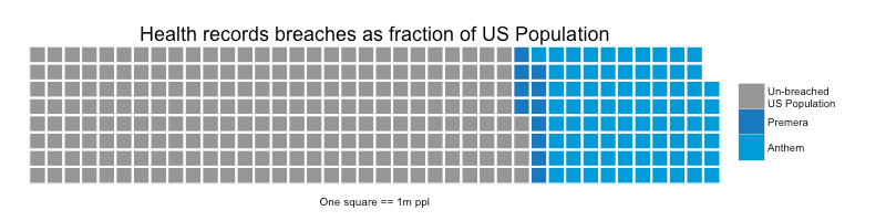 In this series of posts I was also introduced to the Waffle package for R, which makes it easy to put together a pie chart alternative which I quite like – like this: